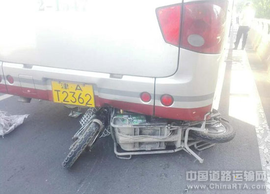 上午九点多,河北区民权门立交桥由金钟河大街去往育红路方向发生七车交通事故,还有一辆电动车被连车带人撞到一辆870公交车下,骑车人受伤被送往医院。路中隔离护栏被撞倒二三十米,事故中一辆丰田轿车车身调转了180°,一辆奥迪轿车前后被撞出窟窿,现场一片狼藉。受事故影响此方向车辆短时间内无法通行,提示过往驾驶员注意服从交警指挥,绕行桥下辅道。