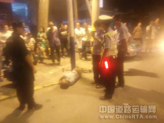 8月30日晚21:30,潼洛交警中队民警王欢、王瑶、陈二宇在火车站执勤时发现有大量群众围观在一起,民警以为是一场交通事故,民警打开警灯,一边上前查看。原来是一个人趴在路中间,过往车辆看到后纷纷避让。