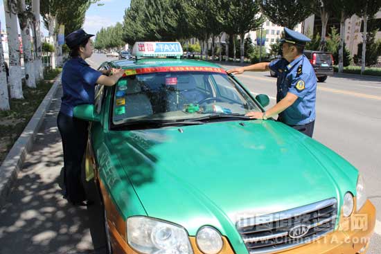 9月3日上午,鄂前旗运管分局联合敖鑫出租汽车公司在敖镇陶伦北路路边设立出租车文明标语粘贴点,为过路出租汽车逐一粘贴文明标语,形成城市亮丽风景线。