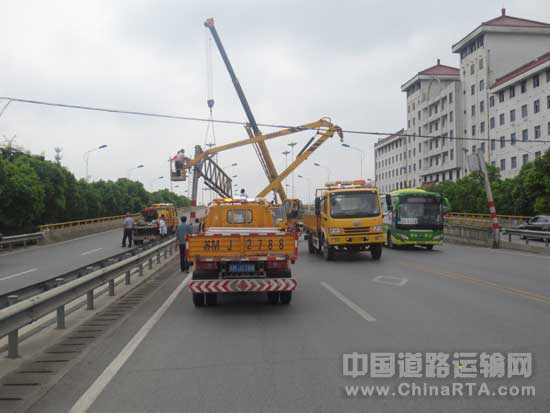 [江苏]限高架被撞存隐患 路政人赶赴保安全(图文)
