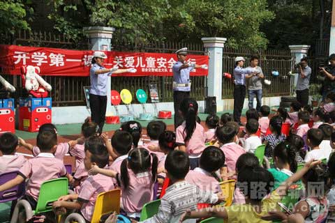 多方联动开展安全宣传。为进一步创新宣传的形式,提升民警的宣教能力与水平,以强化上好“开学第一课”的针对性和实效性,9月7日,新余交警部门还联合新法制报等多家新闻媒体、交通安全设施商家,在辖区学校举办交通安全宣教示范教学活动。主要给学校的孩子们上交通安全常识课,让孩子们增强交通安全意识,远离交通伤害;同时也对支队骨干宣教民警进行了一次集中示范教学,让其在下一次的“开学第一课”上宣教水平更上新台阶。现场精彩的活动赢得了每一位小朋友及家长和老师们的阵阵掌声。与此同时,9月7日,分宜交警大队联合教育、禁毒、消防部门在分宜六中举行“安全教育进校园”宣传光碟发放仪式,给全县中小学校集中送“交通安全大餐”,通过宣传光碟的播放,从多个方面提升广大中小学生的安全防范意识。