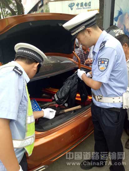 [江西]抚州交警直属一大队查获一辆藏有九把管制刀具套牌车(图文)