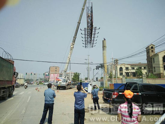 9月24日上午,南康公路分局在国道105线文峰路段,对一块18米宽、6米高、立柱近20米高巨型非公路标志牌进行了拆除。 打响了整治国省干道公路两旁集中整治拆除非公路标志牌的“第一枪”。