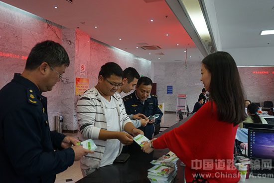 清江清区交通运输局路政大队利用区行政审批中心交通运政服务窗口,开展货运车辆超限超载治理宣传活动,路政执法人员及窗口服务人员现场向驾驶员发放宣传手册并对车辆装载及限值认定新标准进行详细解读。