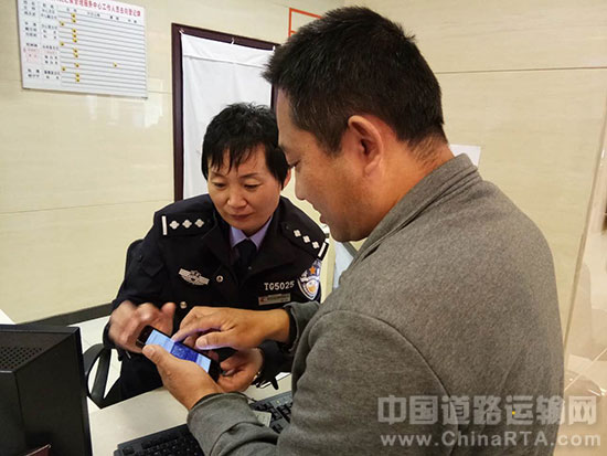 潼关车管所在车驾管服务窗口配置连接互联网的电脑,设立免费互联网@+车驾管服务体验区,引导办事群众扫描下载安装APP〝交管12123〞手机客户端,车管所民警手把手指导群众如何在自己手机上登陆互联网交管服务平台,自助办理驾驶证补、换证业务,指导新车车主自主进行互联网选号业务;详细讲解互联网办理车管业务应注意的事项及网办进度查询方法。
