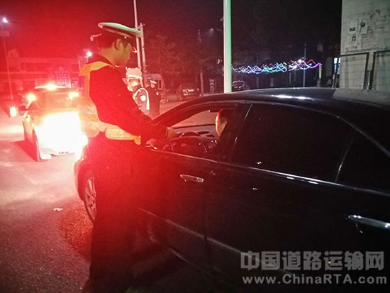 [陕西]潼关秦东交警中队联合港口派出所夜间盘查行动