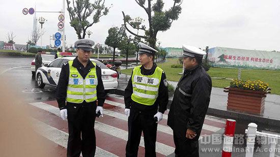 [江苏]淮安市交警三大队顶风冒雨精心疏导全力保障八运会开幕式安全