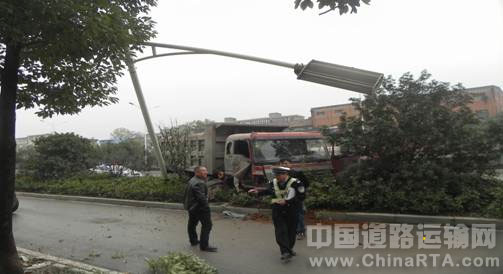 据事故车辆驾驶员介绍,当时其正拉着一车沙石在道路上正常行驶,行驶至该路段时突然方向失控,在没有办法的情况下就撞上了绿化带及路灯杆,自己当时被吓傻了。