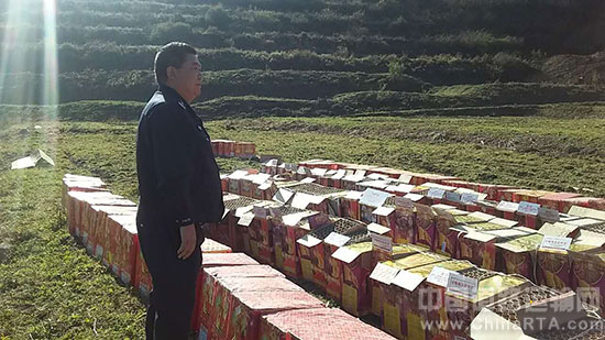2016年以来,甘洛县公安局与县安监、县工商等部门联勤联动,联合执法,把净化烟花爆竹市场作为开展安全生产大检查、隐患大整治、打非治违等专项行动的一项重要工作来抓,经过多次“拉网式”、“地毯式”联合检查行动,共收缴各类违规烟花爆竹1125件,总价值10万余元。