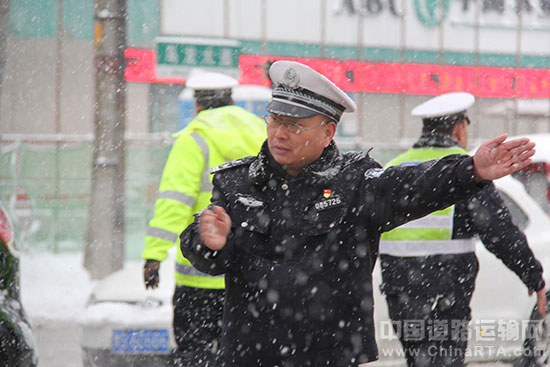 11月22日至23日,豫南气温骤降,河南省淮滨县迎来入冬以来第一场大雪,造成大雪封路,车辆受阻。对此,淮滨县交警大队迅速启动恶劣天气条件下交通管理预案,采取多种方式,加强疏导,防止交通拥堵和交通事故的发生。