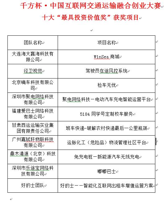 优中选强 互联网交通创业大赛二十强出炉