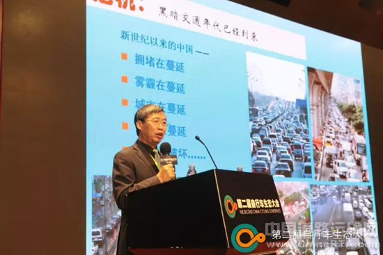 南京市城市与交通规划设计研究院股份有限公司的董事长杨涛在大会首先发言,就直言中国的黑暗交通年代已经到来,并且带来了拥堵、雾霾、健康等种种问题,提出应建设健康交通、健康城市,在这样的背景下,呼吁绿色出行迫在眉睫。他认为自行车交通过去一直处于弱势,现在应该重新重视这一绿色低碳的交通方式。