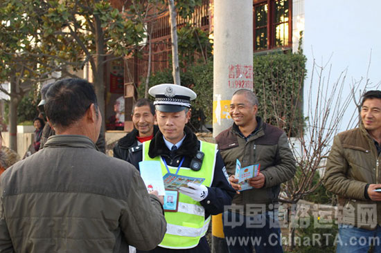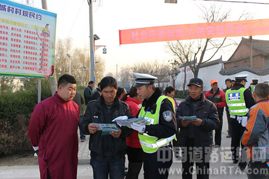 民警详细向群众解说《交通安全法》,宣传群众出行安全常识,乘坐什么样的车辆,安全乘坐,不应该乘坐什么样的车辆。不要乘坐农用车、三轮摩托车、手扶车、拖拉机。有摩托车的的家庭,出行前要检查车辆安全性能,带好驾驶证、行驶证、戴好安全头盔,不要超员、超速、饮酒驾驶机动车,严禁驾驶无牌、无证、报废、被盗车辆。