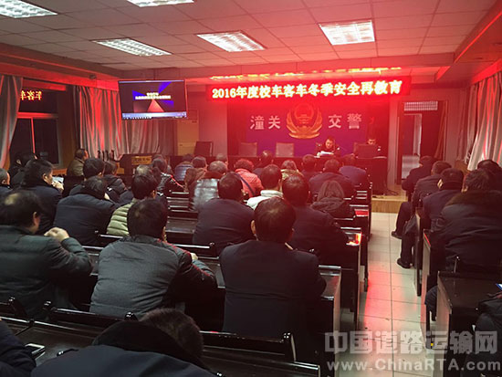 12月15日晚20时,潼关县交警大队秩序管理中队召集全县境内校车客车驾驶员及管理人员进行冬季安全形势再教育培训会,进一步加强客运车辆交通安全监管力度,坚决杜绝客运车辆交通违法行为,从源头上遏制重特大道路交通事故发生。