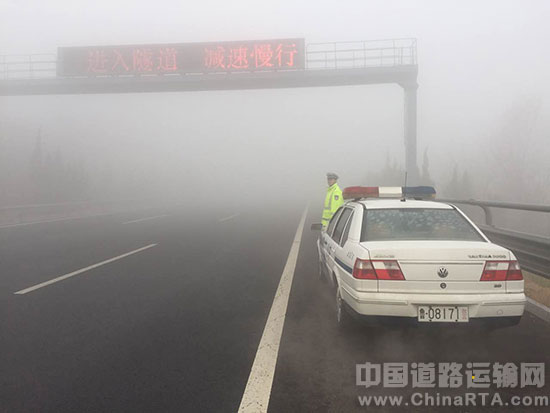 2、在行车途中遇到薄雾,应及时开启雾灯,保持车距、降低车速,随时关注路面显示屏提示信息。