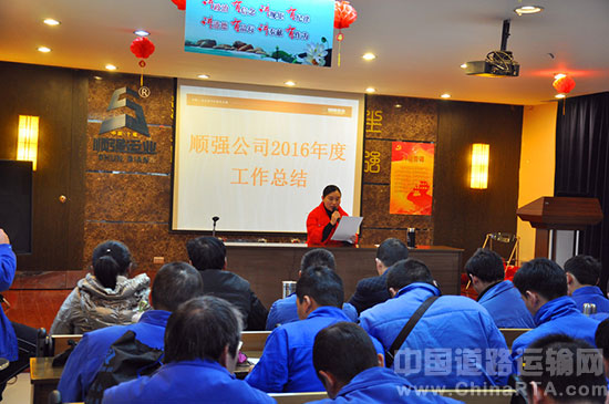 下午3点至7点,顺强公司会议室座无虚席,两场驾驶员培训大会先后在此举办,顺强出租车分公司总经理王强主持会议。客服中心主任胡静首先总结了2016年度工作,从福利落实、获得荣誉、参观学习、星级考核、窗口宣传、教育培训、好人好事、整治投诉、路检路查、注册注销、安全生产、学习先进、分区管理、五城联创、维护稳定、党工共建、关爱员工、推树典型等19项内容分别进行阐述,肯定了本年度工作的成绩,并对下年度工作进行简要计划。