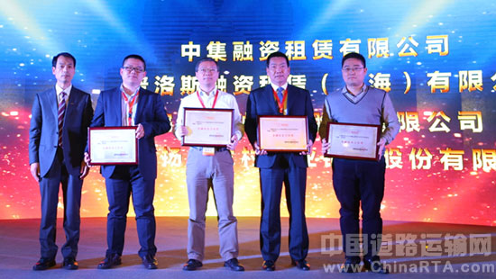 图为联合卡车代理总经理兼营销公司总经理李衍硕先生(左一)为“最佳合作伙伴奖”颁奖