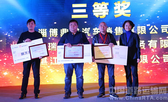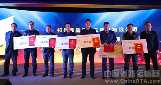 图为联合卡车副总经理(左一)冯兴俊先生为获奖者颁奖