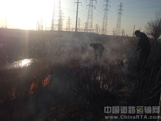 [河北]沧州中捷交通局路政大队奋力救火,确保道路安全畅通