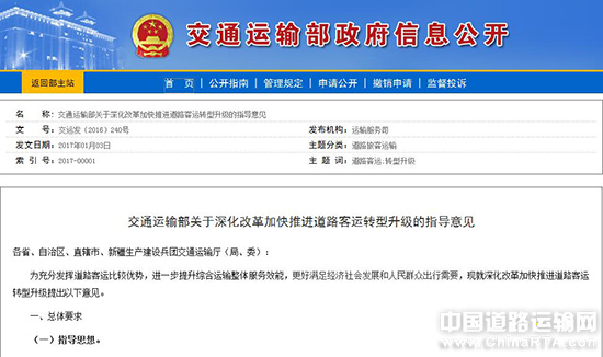 交通运输部关于深化改革加快推进道路客运转型升级的指导意见