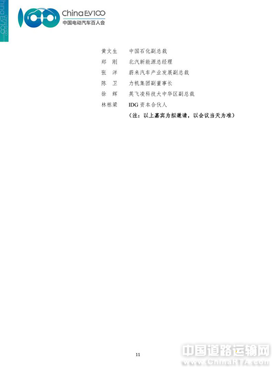 本届论坛定向邀请来自中央有关部委、主要示范城市政府部门、汽车界、能源与交通领域、信息领域、装备制造、投资界等人士参加。目前,发言及参会嘉宾的邀请工作已基本完成,现公布各会议的发言嘉宾。