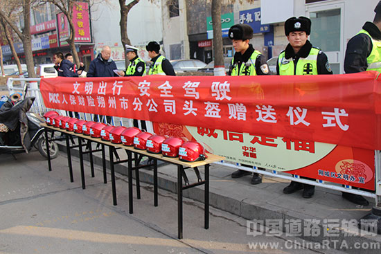 [山西]朔城交警大队爱心企业街头赠送头盔 倡导市民安全出行