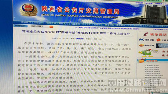 1月5日,陕西省公安厅交通管理局网站刊登:渭南潼关大队车管所“四项举措”推动2017年车驾管工作再上新台阶。