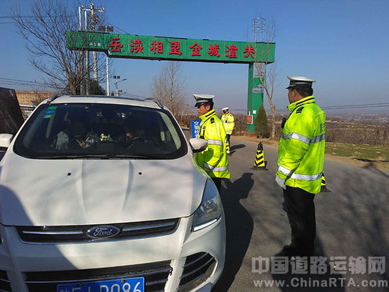 2017年春运即将正式开始,潼关潼洛交警中队宣传交通安全,严查各类车辆。