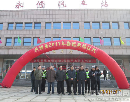 为进一步安排部署永修县2017年春运工作的开始,1月13日上午9时,江西省永修县在九江长运永修客运汽车站举行了2017年春运启动仪式,标志着永修县春运正式拉开序幕。县交通运输局、永修运管分局、、县交警大队、县安监局、等主要负责人和长运永修客运汽车站相关运输企业代表及驾驶员代表参加仪式。