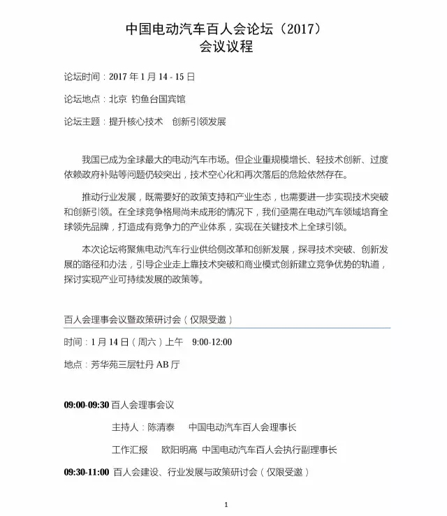 附录:2017中国电动汽车百人会年度论坛详细日程: