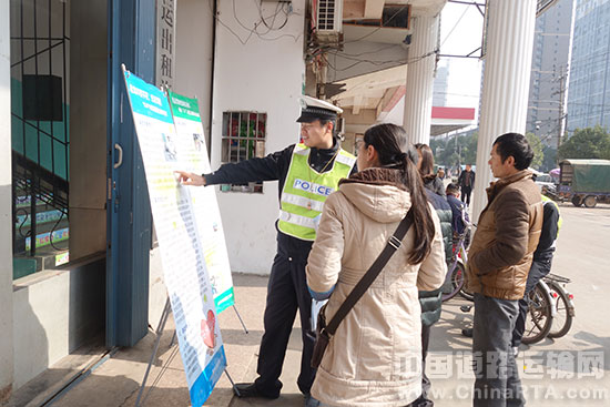 宣传中,大队民警在客运站进出口处通过宣传展板、宣传海报向来往群众宣传交通法规,警示广大乘客要增强自我安全保护意识,切勿乘载“黑车”、超员客车。随后,为进一步达到宣传效果,民警还走进客运场站,并登上各班线客运车,给各班线驾驶员、乘客发放《事故案例汇篇》、《冬季出行注意事项》等宣传资料,向广大司乘人员宣传冬季行车安全常识、车辆发生故障或事故后的处置措施及恶劣天气条件下的行车技巧,告知驾驶员拒绝超员、超速、疲劳、酒后驾驶等交通违法行为的危害性,要求驾驶员春运将安全牢记于心,共同营造“和谐春运、平安出行”的良好氛围。同时,民警还与司乘人员进行了有问必答的互动,积极解答交通安全知识咨询,为群众答疑解惑。