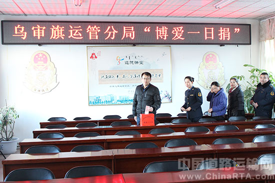 为了发扬团结互助、扶危济困、助人为乐的传统美德,乌审旗运管分局于1月17日上午组织全体干部职工举行了“博爱一日捐”募捐活动,以实际行动表达爱心,携手助困。在捐赠活动中,全体党员干部带头,广大职工踊跃参与,为困难家庭献上了一份爱心。