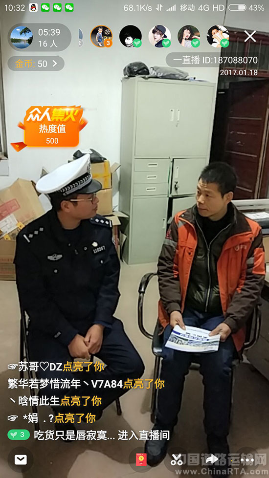 为进一步提高货运站货运司机、非机动车安全出行观念,杜绝超速、乱停乱放等违法行为。近日,抚州市交警支队直属三大队民警来到辖区快捷快公司,以网络直播与现场宣传相结合的方式,开展“春运交通安全”专题宣传活动。