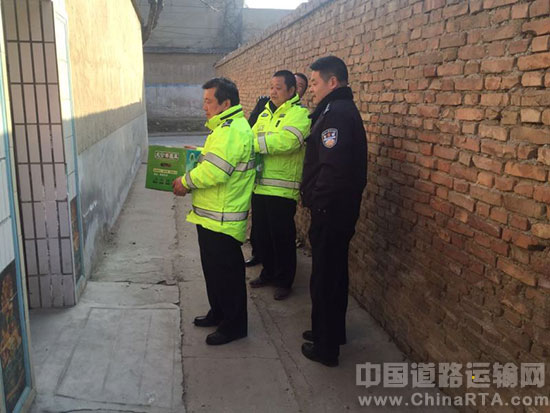 2017年1月23日,潼关矿区交警中队中队长郭立哲带领班组长走访民警家庭及住院家属,为民警家庭带来慰问品和新年的祝福。