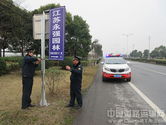 1月22日上午,泰兴市公路管理站路政人员巡查至229省道黄桥段时,发现有单位将固定式非标固定在人行道确认标志上,严重影响来往车辆对人行道的注意力,存在极大的安全隐患。经沟通当事人,路政人员动手将3处固定式非标进行了拆除,保障了公路的安全畅通。