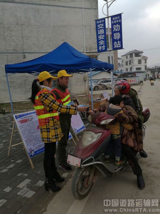 1月20日上午,农村交通安全劝导员头戴小黄帽,身穿反光背心,利用逢圩日期间,出行群众骤增,在交通安全宣传站点引导路过的摩托车靠边停下,向驾驶员们发放交通安全宣传资料,劝导外出村民拒绝乘坐超员客车、低速载货汽车、非法营运三轮车等危险车辆出行,并劝导过路摩托车驾驶人要佩戴好安全头盔,自觉遵守交通法律法规,平安出行。此次活动增强了广大农村村民的交通法制意识和安全意识,提高文明交通的自觉性,为平安和谐的交通环境营造良好宣传氛围。