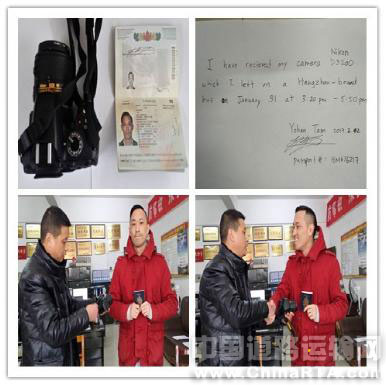 元月31日(大年初四)黄山长运客运分公司“屯溪-杭州”班线驾驶员孟凡保,下午15:20驾驶皖J07709去程到达杭州西站后,利用发车前间隙对车辆进行全车清扫和检查时,在一座位角落处发现了乘客遗失的尼康单反数码相机。因当时全车乘客早已离去且无法确定失主的信息,孟凡保考虑到乘客遗失贵重物品的焦虑心情,立即将此事电话告之了分公司运务人员李朝旭,并把相机妥善保管。