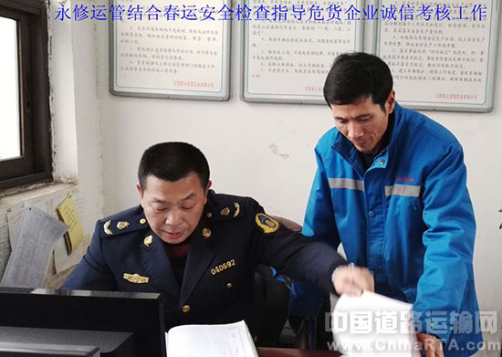 笔者于2017年1月4日获悉,九江市道路运输管理局永修分局结合道路春运安全检查工作,指导道路危货企业进行2016年度诚信考核工作。