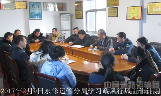 为了进一步巩固永修运管的政风行风建设,分局于2017年2月6日修订了《九江市道路运输管理局永修分局2017年政风行风建设工作计划》,同时印发给各科室;并且于2月9日下午在五楼会议室组织分局全体干部职工学习2017年政风行风建设工作计划。