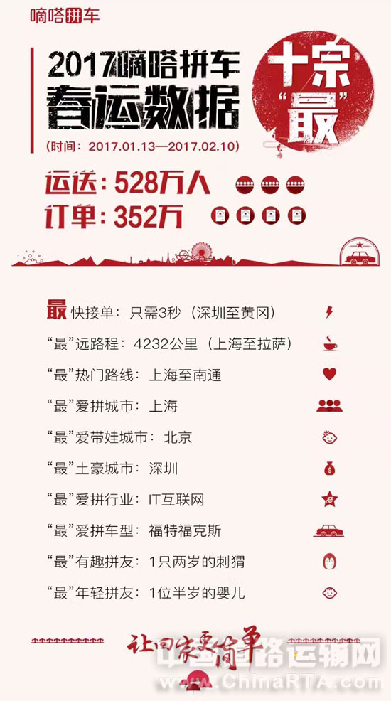 运送528万人拼车出行 嘀嗒拼车盘点2017春运拼车十宗“最”