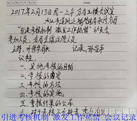 笔者获悉,2017年2月13日,九江市道路运输管理局永修分局 “引进考核机制,激发工作热情”。