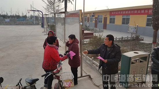 临渭小什中队巡逻一班班长毛亚锋带领民警来到楼赵村,组织并带领社区负责人对村民及驾驶员发放了交通安全宣传资料,同时还向他们讲解了交通安全和文明出行的知识,要增强交通出行的法制意识、安全意识、文明意识,要人车各行其道,遵守交通规则,车辆不要抢道占道,行人不要有跨越隔离设施等交通陋习。