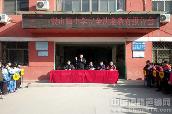 2月20日东平县公安局交警大队宣传民警走进银山镇中学,以安全法制教育报告会的形式对中学生进行交通安全教育。