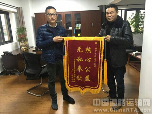 2月20日,我县环保局副书记、副局长谭益强一行来到长运公交公司,把一面绣有“热心公益,无私奉献”的锦旗送到了公司经理卢成斌的手中,以此表达公交公司一年来为安吉生态公益事业的支持。