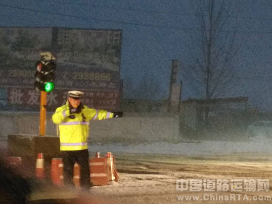 自2月21日17时许,东平县境内普降大雪,气温骤降。东平县公安局交警大队全体民警走上街头,驻守在105国道、220国道、331省道等重点道路,以及城区各主要路口。提醒过往车辆减速慢行,确保夜间道路安全。