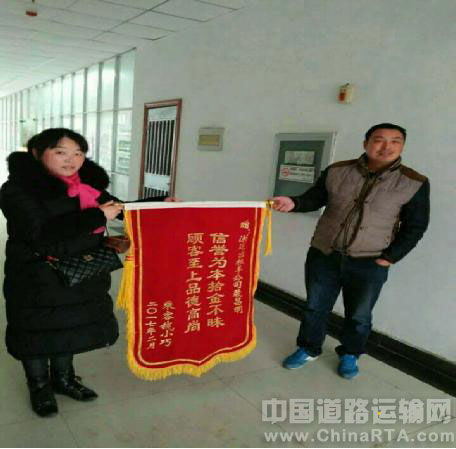 2月22日上午,一位女士手持锦旗来到泗洪运输有限公司洪运出租车分公司,感谢和表扬洪运出租车分公司苏N67090车驾驶员裴昌明拾金不昧的高尚品德。