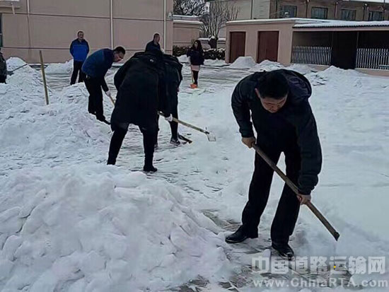 全体职工共分两组,一组负责铲雪,另一组负责清扫地面上的浮雪,铲雪的人累了便和扫雪的人交换,两组人员相互配合,相互辅助,在皑皑白雪中倒映出一幅团结、协作的动人画面,经过两个多小时的集体劳动,分局周围的积雪终于全部清扫干净,恢复往日的清爽。