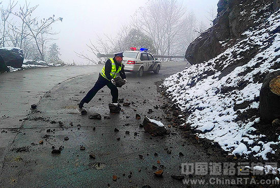 一是及时发布路况信息,联合当地乡村干部和沿途道路交通安全劝导站劝导员,通过广播、微信等发布路况信息和温馨提示,沿途巡逻喊话,提醒过往车辆小心驾驶;二是迅速排查消除隐患,全面加强山区危险点段排查,在危险点段及时设置交通警示标志,提醒驾驶人小心驾驶,确保交通安全设施防护效能的有效发挥,并与当地乡镇干部组成排险救援组,及时清理滑坡路段岩石,清除悬崖路段、急转弯、陡上坡等安全隐患极大的路面积雪,保障人民群众生命财产安全和安全出行,严防交通事故发生;三是加强巡查管控秩序,加强巡查力度,严禁客车超员,从严打击机动车超速超载、农用车和摩托车违法载人等严重交通违法行为,严查机动车辆技术性能和防滑工具配备,确保车辆状况良好,严防因制动失效和冰雪路滑引发的重特大交通事故。