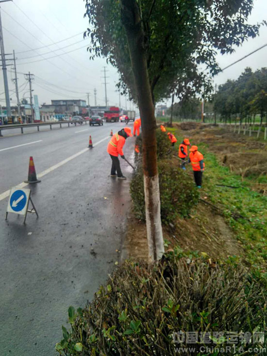 [江苏]泰兴市公路管理站整修路肩边坡美化春日公路