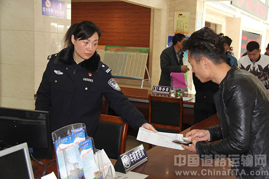 说话间,我们来到了这宽敞明亮的服务大厅,只见位于西侧交警车管岗位的女民警陈辉、郑晓丹、吴曼曼三同志,正面带微笑的为群众办理车辆检验事项,个个忙是不亦乐乎。据车管所负责人介绍,2016年三位女同志,日均受理办证业务120多笔,2017年春节最高峰时,三同志一天受理业务656笔。由于工作勤奋,服务热情,2016年郑晓丹同志被淮滨县妇联授予“三、八红旗手” 称号,陈辉、吴曼曼两同志受到淮滨县委政法委表彰,三同志还被评为全市行政服务工作“优质服务标兵”。